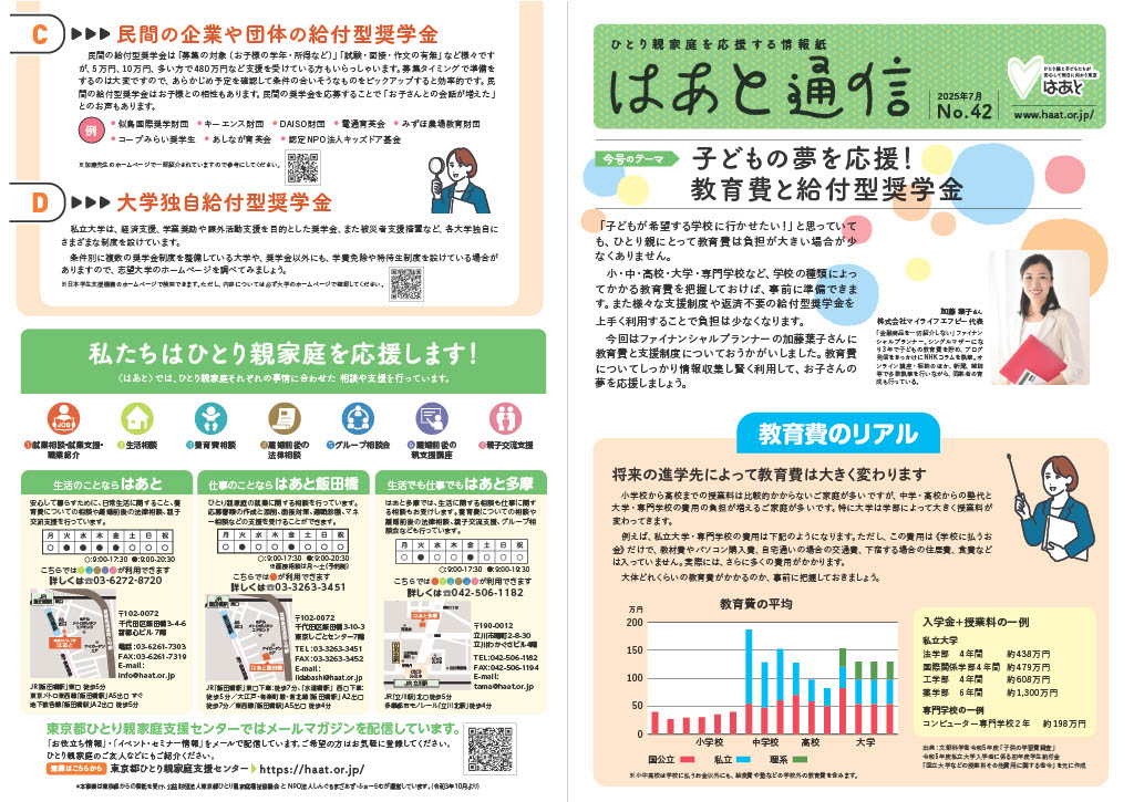 - はあと通信42号「子どもの夢を応援! 教育費と給付型奨学金」(2025年7月発行) (1 MB)