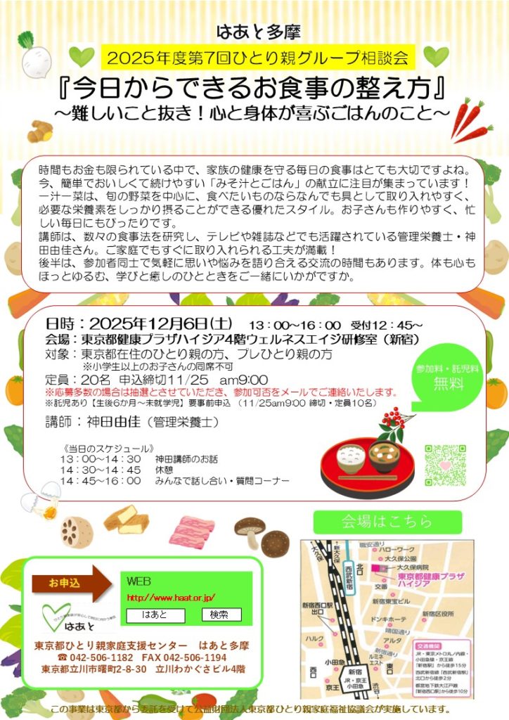 対象 | 東京都在住のひとり親の方・プレひとり親の方 ※小学生以上のお子さんの同席不可です |