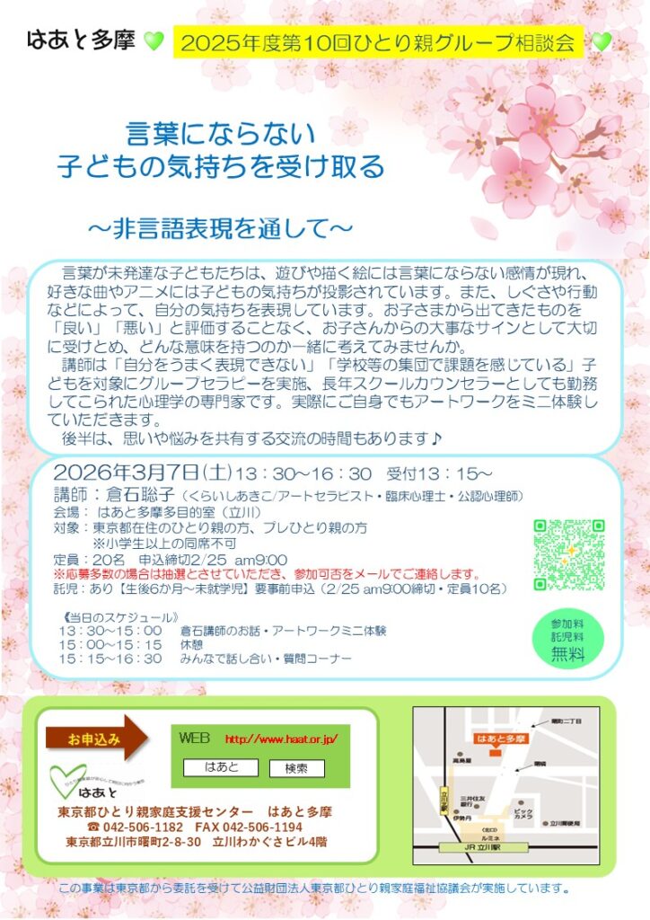 2025年度 第10回ひとり親グループ相談会 『言葉にならない子どもの気持ちを受け取る』~非言語表現を通して~